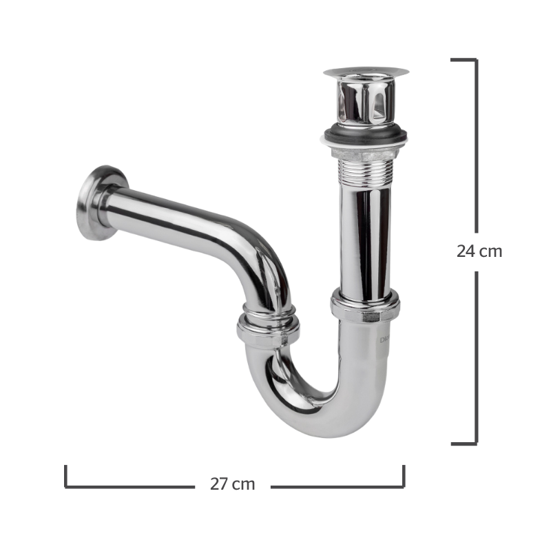Céspol y contra con rebosadero. Su forma en "P" crea sello hidráulico que evita paso de malos olores
